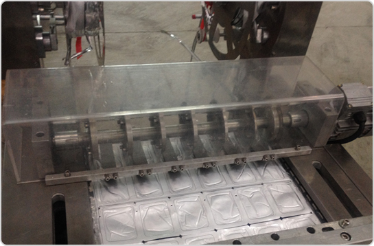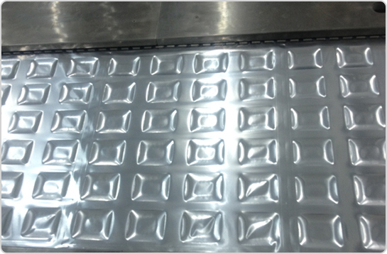 3、設(shè)備中部(上膜熱成型區(qū)) 只需要將物料擺放好到成型好的格子當(dāng)中即可,剩下的事情都交給機(jī)器了。 |